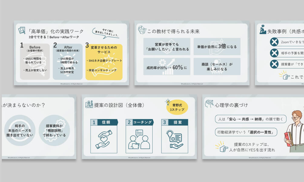 営業や提案が苦手な方へ、提案資料の作成や商談の進め方を具体的にアドバイス。成約につながる提案力を実践的に強化します。